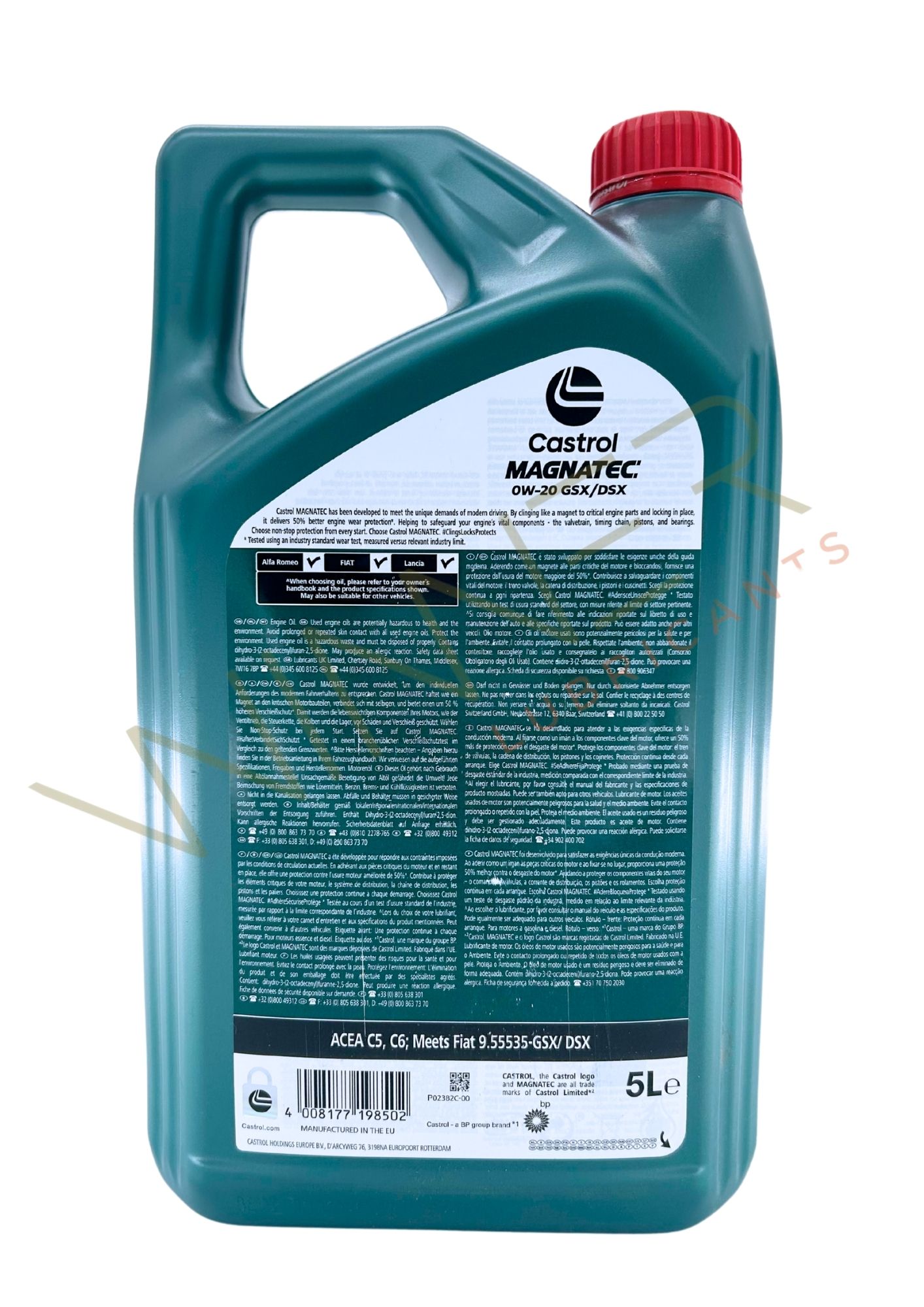 Castrol MAGNATEC 0W-20 GSX/DSX è ideale per veicoli a benzina e diesel che richiedono un lubrificante con viscosità SAE 0W-20 e specifiche ACEA C5 o C6. Inoltre, soddisfa i requisiti Fiat 9.55535-DSX/GSX, garantendo massima efficienza e prestazioni affidabili nel tempo.