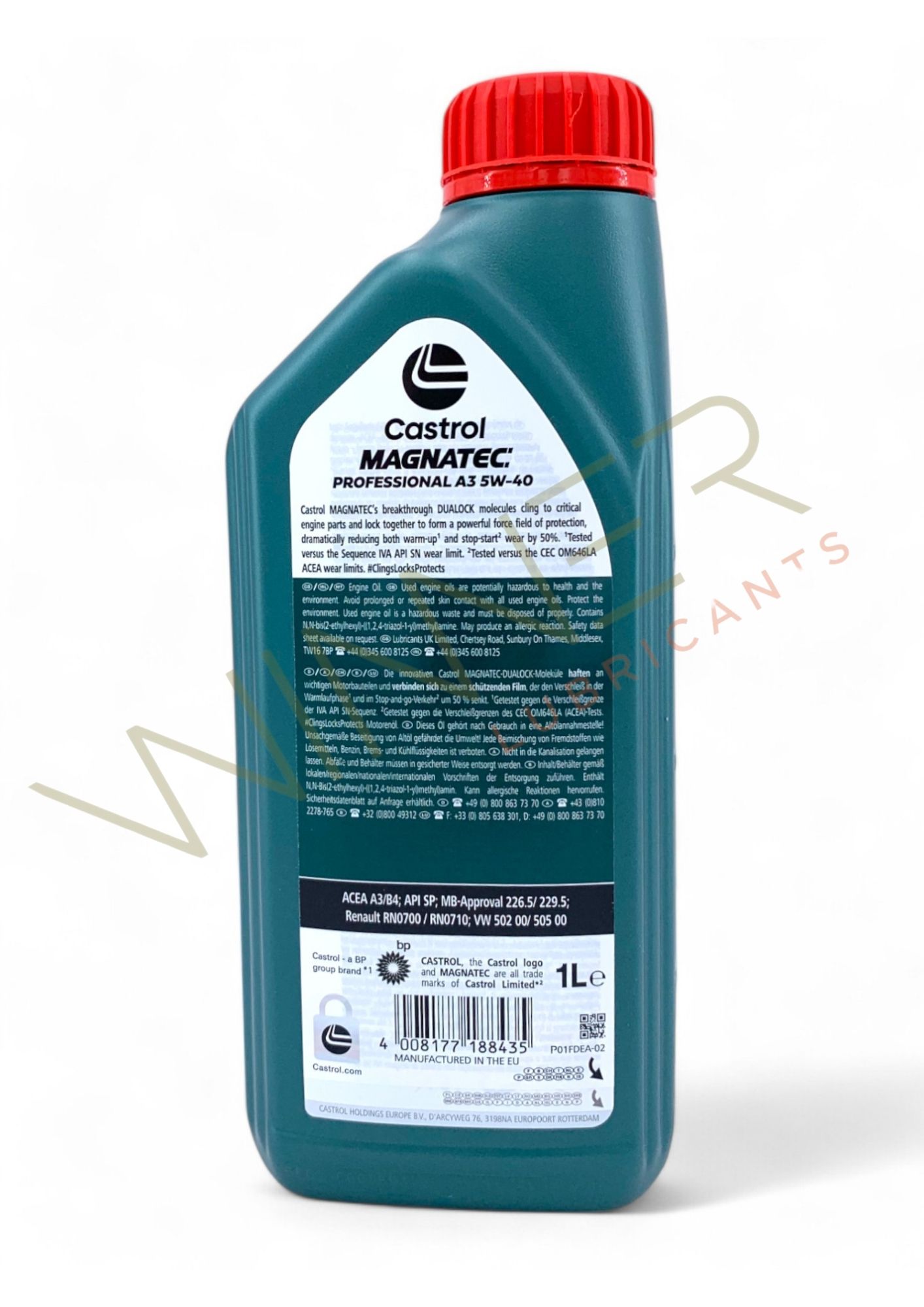 Castrol MAGNATEC Professional A3 5W-40 è un olio motore sintetico di alta qualità, progettato per offrire protezione istantanea fin dal momento dell’accensione. Grazie alla tecnologia molecolare DUALOCK brevettata, garantisce una riduzione dell’usura fino al 50% sia durante la fase di riscaldamento che nelle condizioni di guida stop-start.
