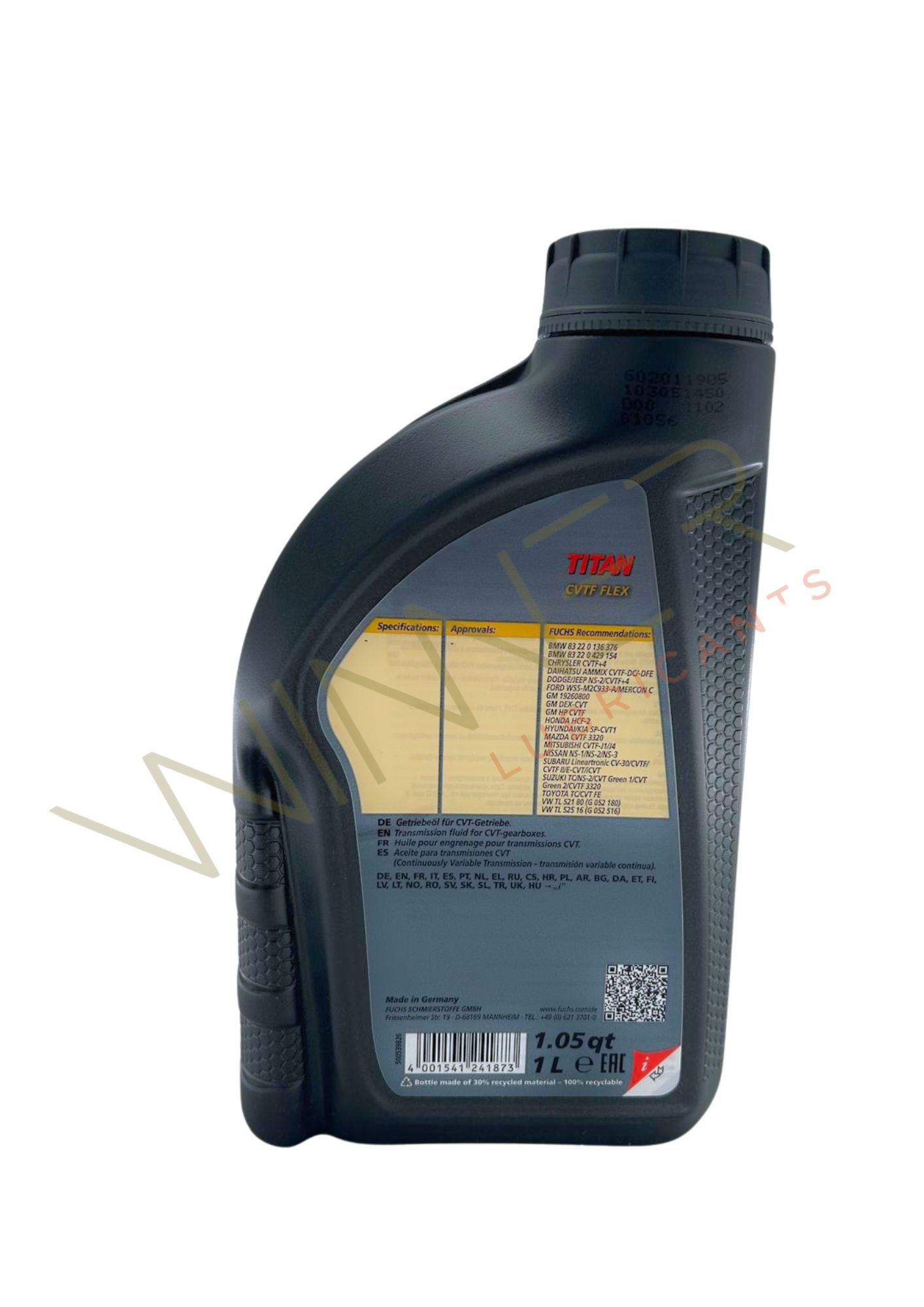 | Specifiche | BMW 83 22 0 136 376, BMW 83 22 0 429 154, Chrysler CVTF+4, DODGE, FORD WSS-M2C933-A, GM 19260800, GM DEX-CVT, HONDA HCF-2, Mazda CVTF 3320, MERCON C, MITSUBISHI CVTF-J1, MITSUBISHI CVTF-J4, NISSAN NS-1, NISSAN NS-2, NISSAN NS-3, SUBARU CVTF, SUBARU CVTF II, SUBARU E CVT, SUBARU iCVT, SUBARU Lineartronic CV-30, SUZUKI CVT Green 1, SUZUKI CVT Green 2, SUZUKI CVTF 3320, SUZUKI NS-2, SUZUKI TC, TOYOTA CVT FE, TOYOTA TC, VW TL 521 80 (VW G 052 180), VW TL 525 16 (VW G 052 516) |