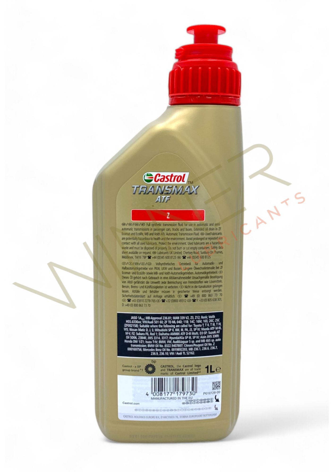 | Specifiche | Aisin Transmissions requiring JWS 3309, BMW, BMW Oil No. 8322.9407807, Citroen Oil No. Z 000169756, DTFR 13C160, Honda/Acura DW 1/Z1, Isuzu (where Toyota T-IV is required), JASO 1A(03), JWS 3314, JWS 3317, MAN 339 V2, MAN Z12, MAN Z3, MB 236.81, MB-Approval 236.81, Peugeot Oil No. Z 000169756, Porsche Oil No. 999.917.547.00, Voith H55.6336.xx, VW / Audi TL 52162 (G 052 162), VW/Audi 501 60, ZF Lifeguardfluid 5, ZF TE-ML 04D, ZF TE-ML 11B, ZF TE-ML 14C, ZF TE-ML 16M, ZF TE-ML 16S, ZF TE-ML 20C, ZF TE-ML 25C |